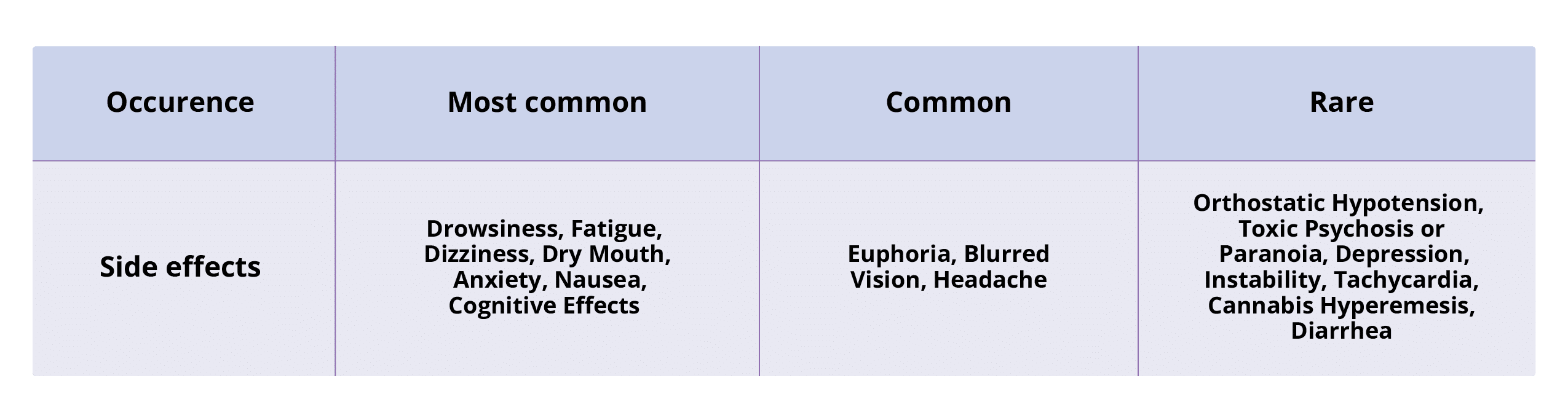lead to increased risk of tachycardia. - Medical cannabis use may lead to dependence, tolerance, and withdrawal symptoms