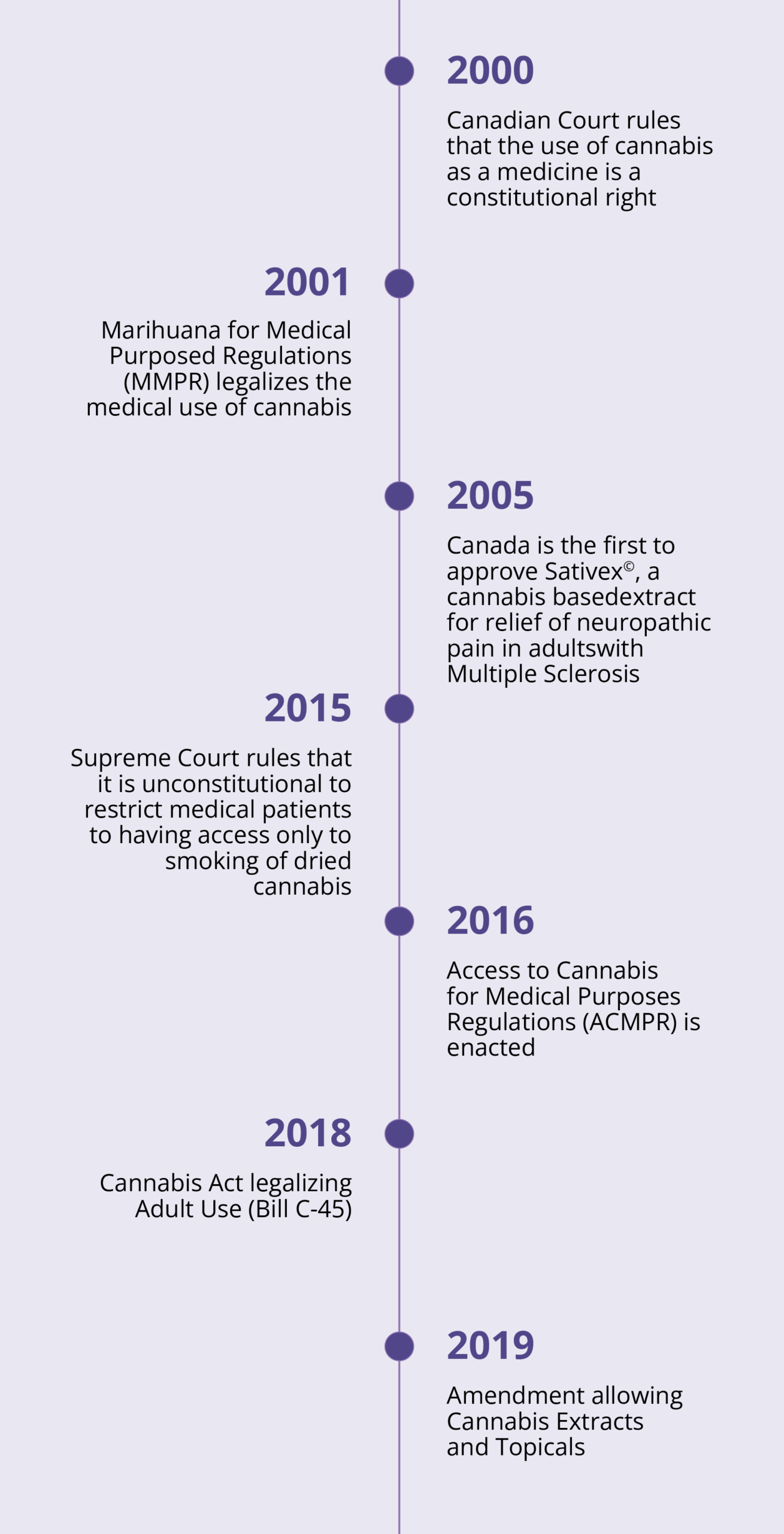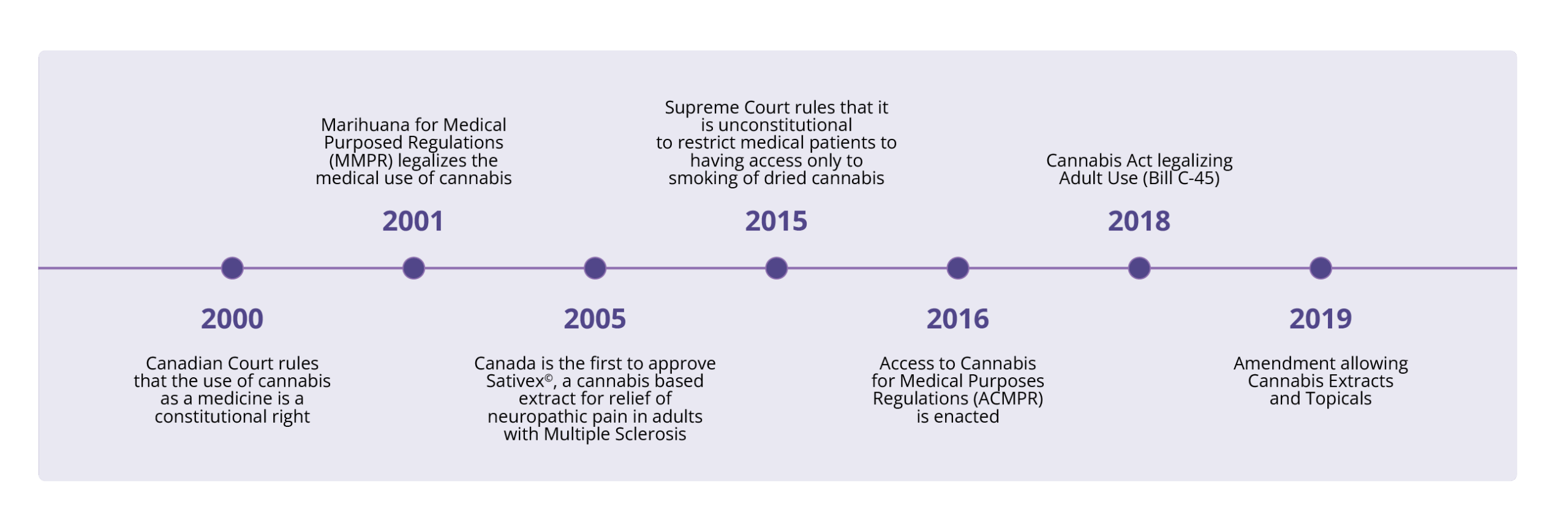 Brief overview of recent major milestones related to Canadian medical cannabis regulations.
