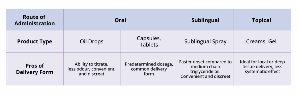 Currently, there are over 350,000 patients registered to use cannabis for medical purposes.7 Yet, the Canadian Pharmacists Association reported that 61% of medical cannabis users are self medicating without the guidance of healthcare practitioners (HCP).8 Prior to January 2020, the medical products available for patients were extremely limited, with product offerings consisting mainly of dried flower and basic oil drops. However, novel delivery forms and more advanced formulations can provide patients with other options. Indeed, over 75% of patients prefer smokeless and non-inhalation product alternatives for medical use.8